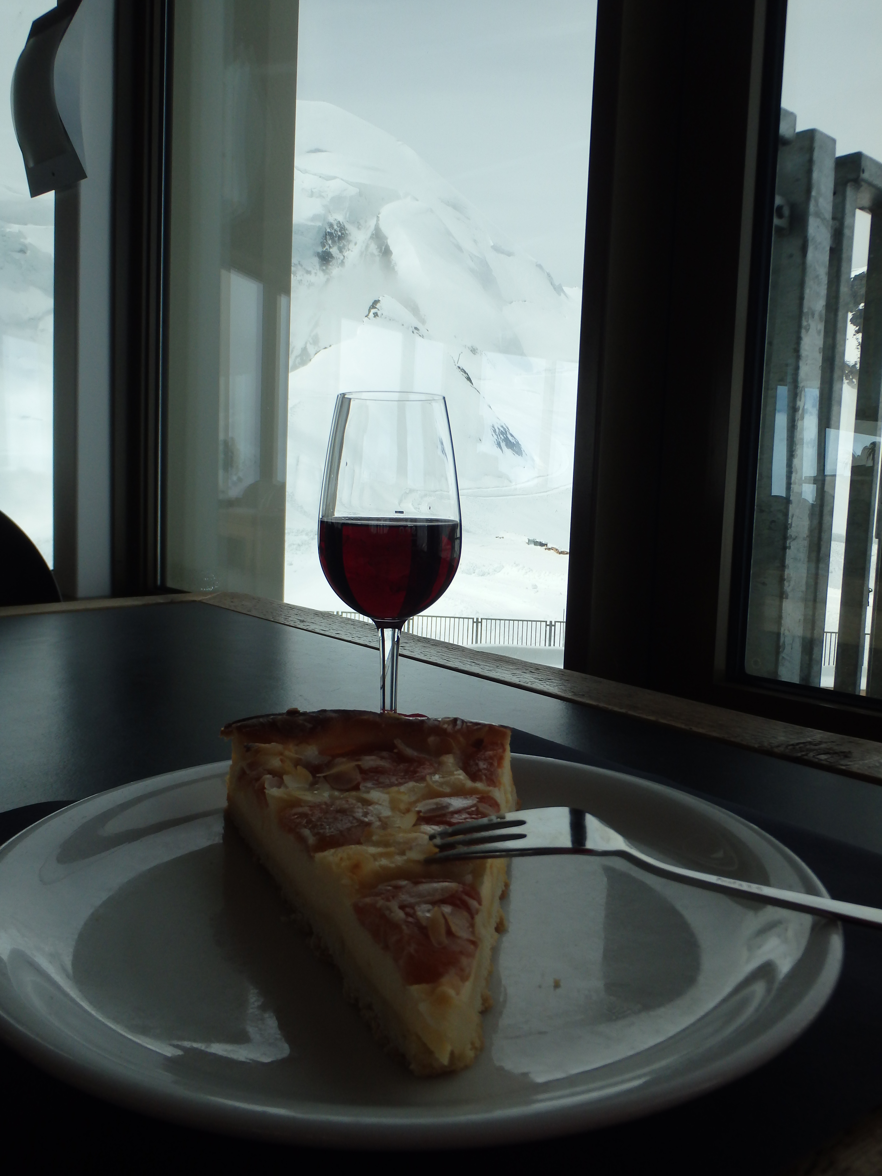 Defeated, I cut my losses and went up into the Metro Alpin Station to drown my sorrow in some local wine and apricot cheesecake before leaving Saas Fee for Zermatt.