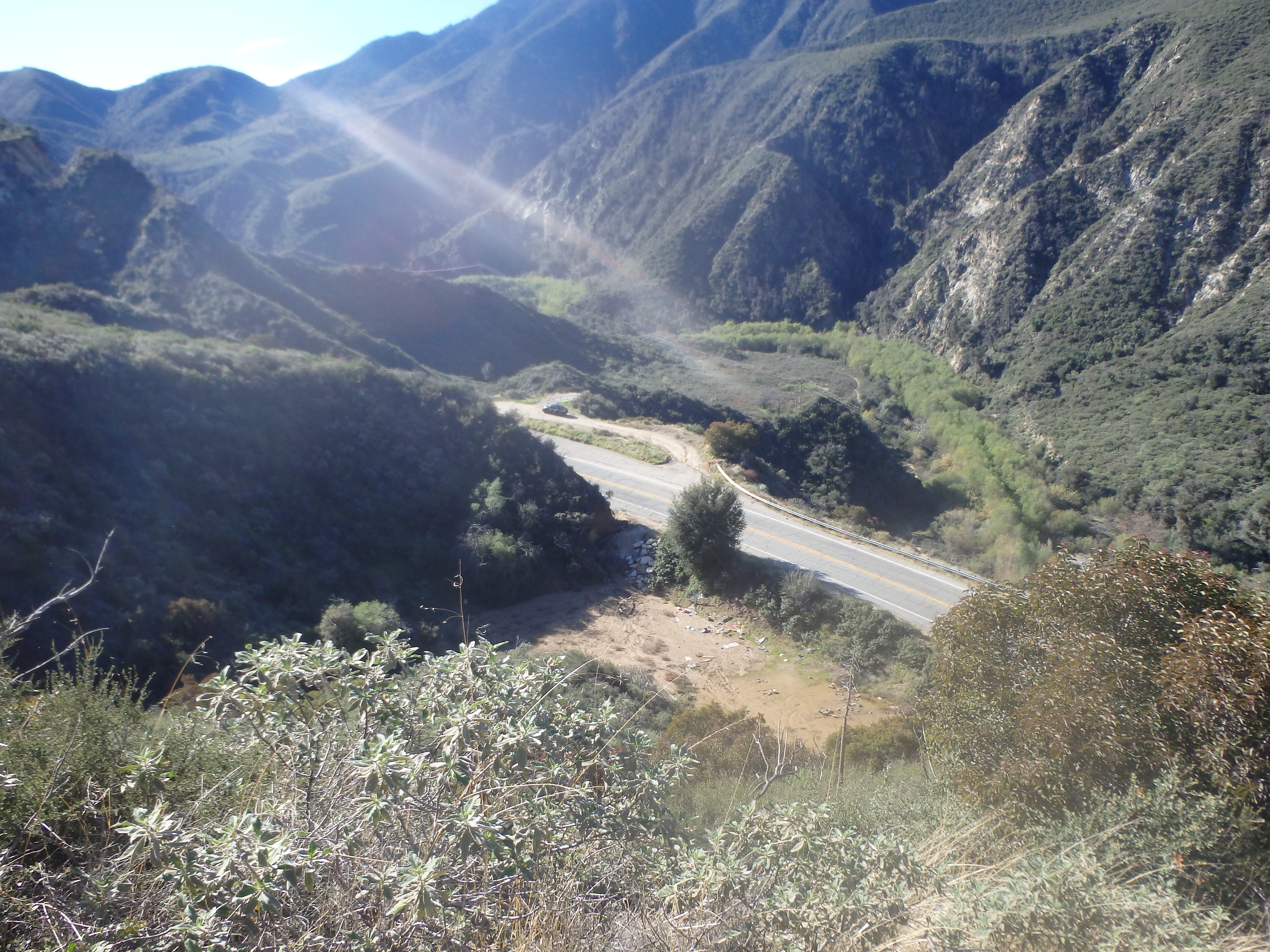 Shortly past the falls and a handful of switchbacks, the trail dropped back towards the water near some full grown oak trees that had somehow survived the fire. The final section of the canyon was dramatic and deep, and I could only imagine what it looked like before 2009. Nearing the end, the trail headed through a number of small cabins before a final stretch of fire road brought me back to the highway. I was hopeful that the pullout I had parked at had shaved at least a mile from my road hiking. In reality, it saved me less than half a mile and I reached my car in fading light just before 7 PM. Famished, I high tailed it back into LA for dinner then checked into my hotel downtown.