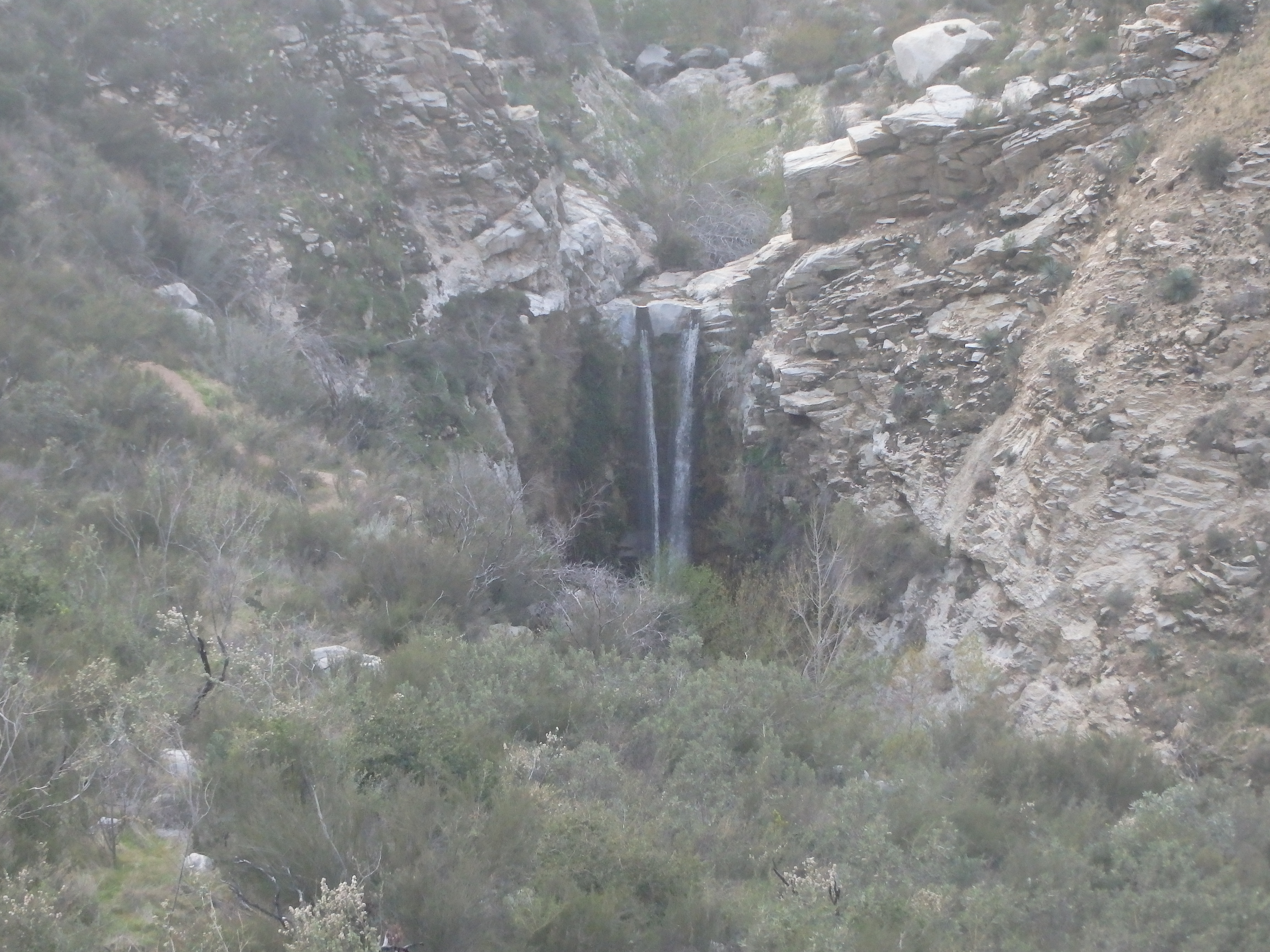 I continued downstream and finally stumbled on a flagged loose route that became more and more well defined as I continued along. It seemed the worst of the brush was finally behind me at Tom Lucas. It was around 4:30, and I had no real idea of how much trail I had to hike and how much time I had wasted fighting through the brush. I passed a trio of backpackers on the descent, and the trail improved with every step, running with an ever growing stream with small waterfalls and pools. After the bushwacking, it was a nice bit of redemption. The trail stayed high near Trail Canyon Falls and I began to pass a number of day hikers signaling that my trail time was nearing an end.