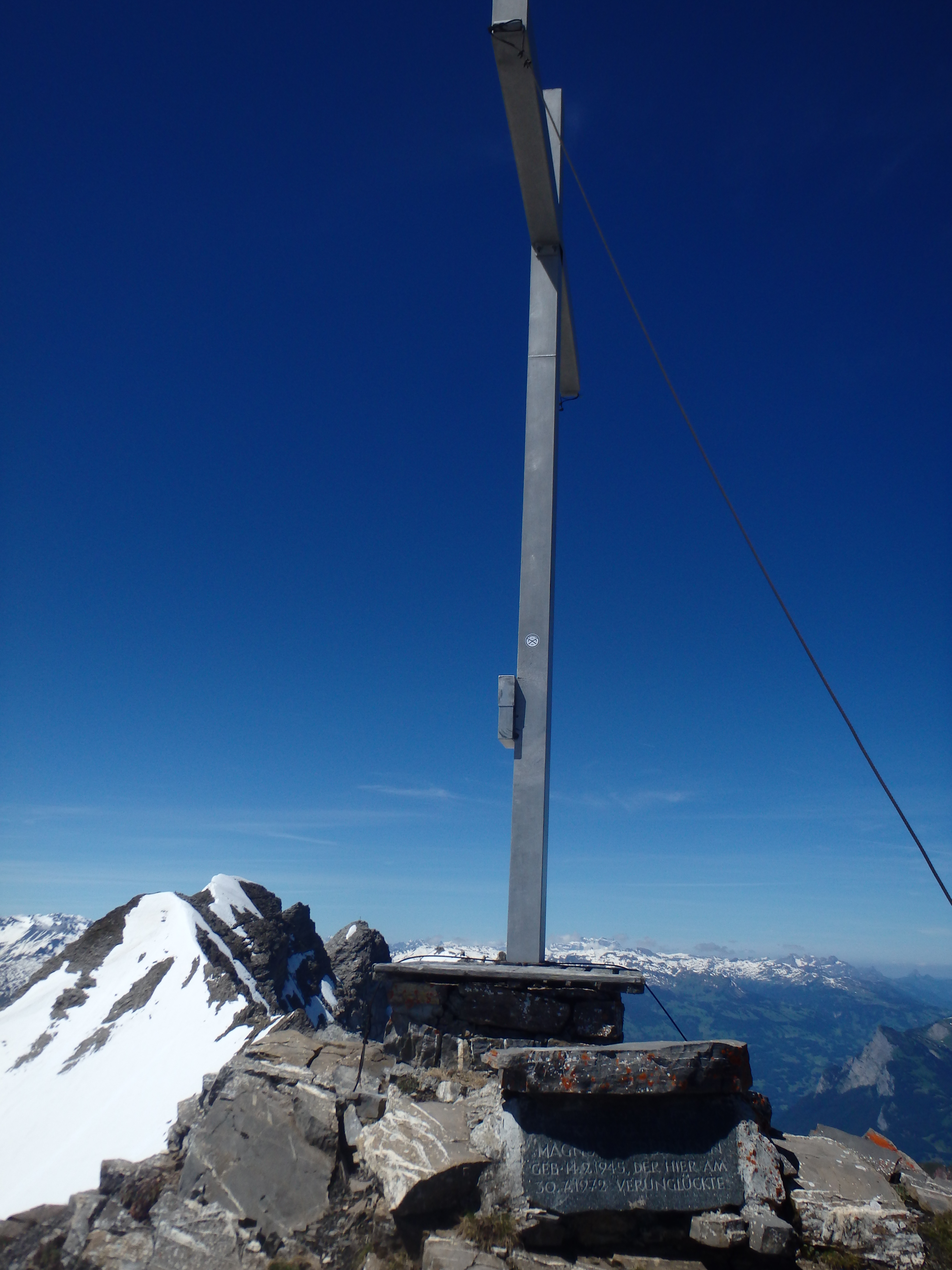 I headed up the ridge, taking my crampons off briefly for a very narrow section, and curved up some snow patches to the summit cross and my first Alpine summit.