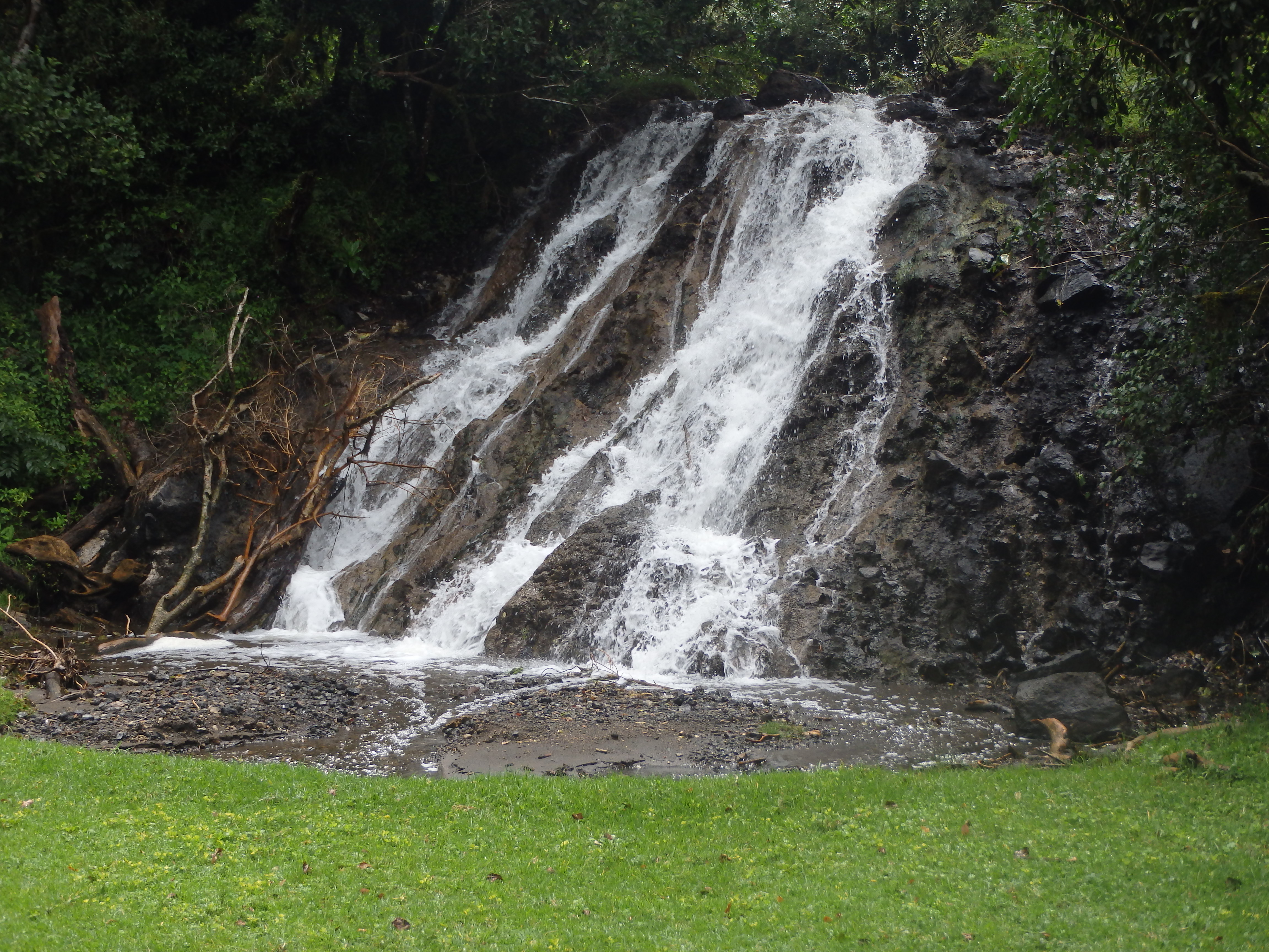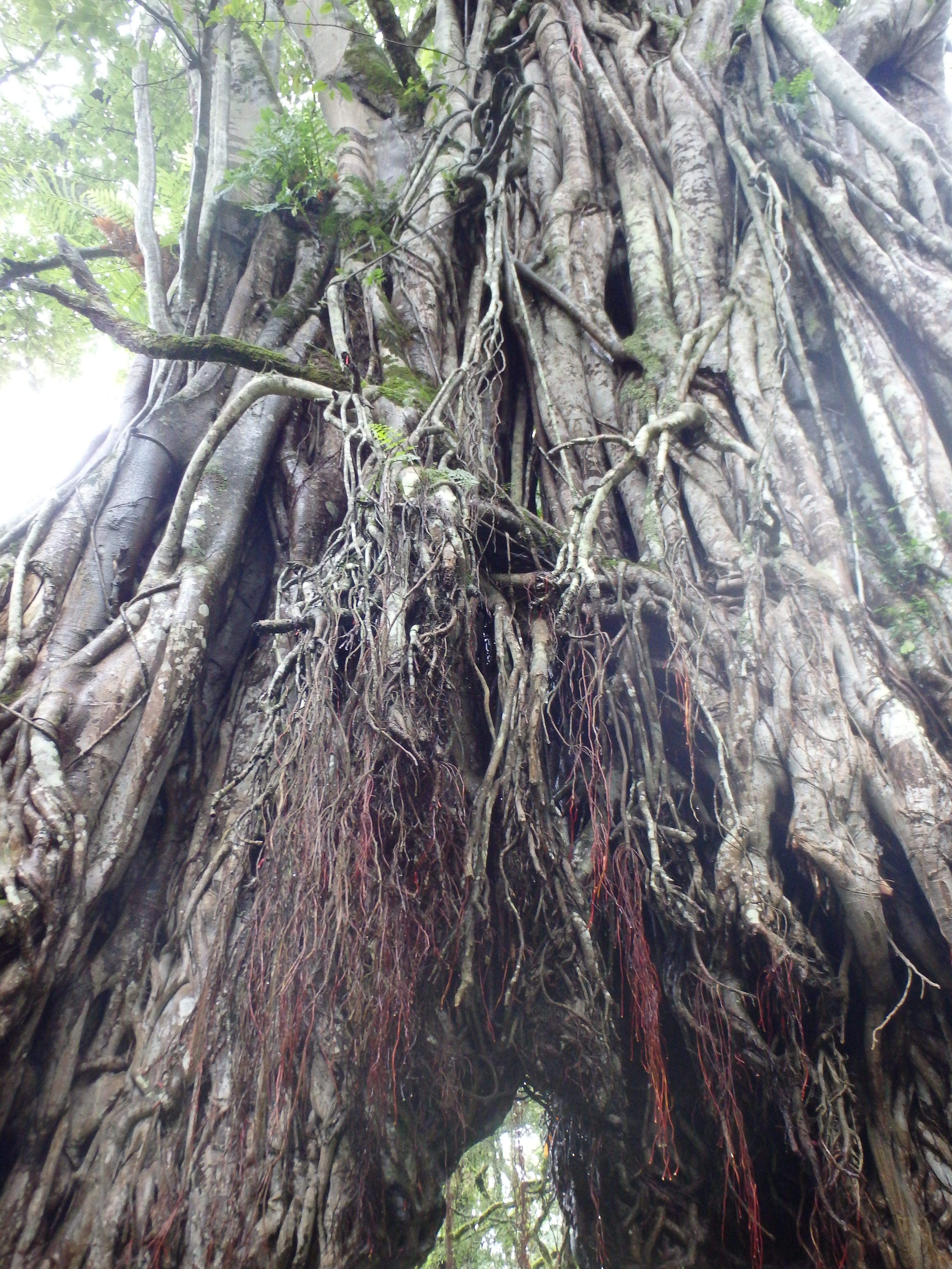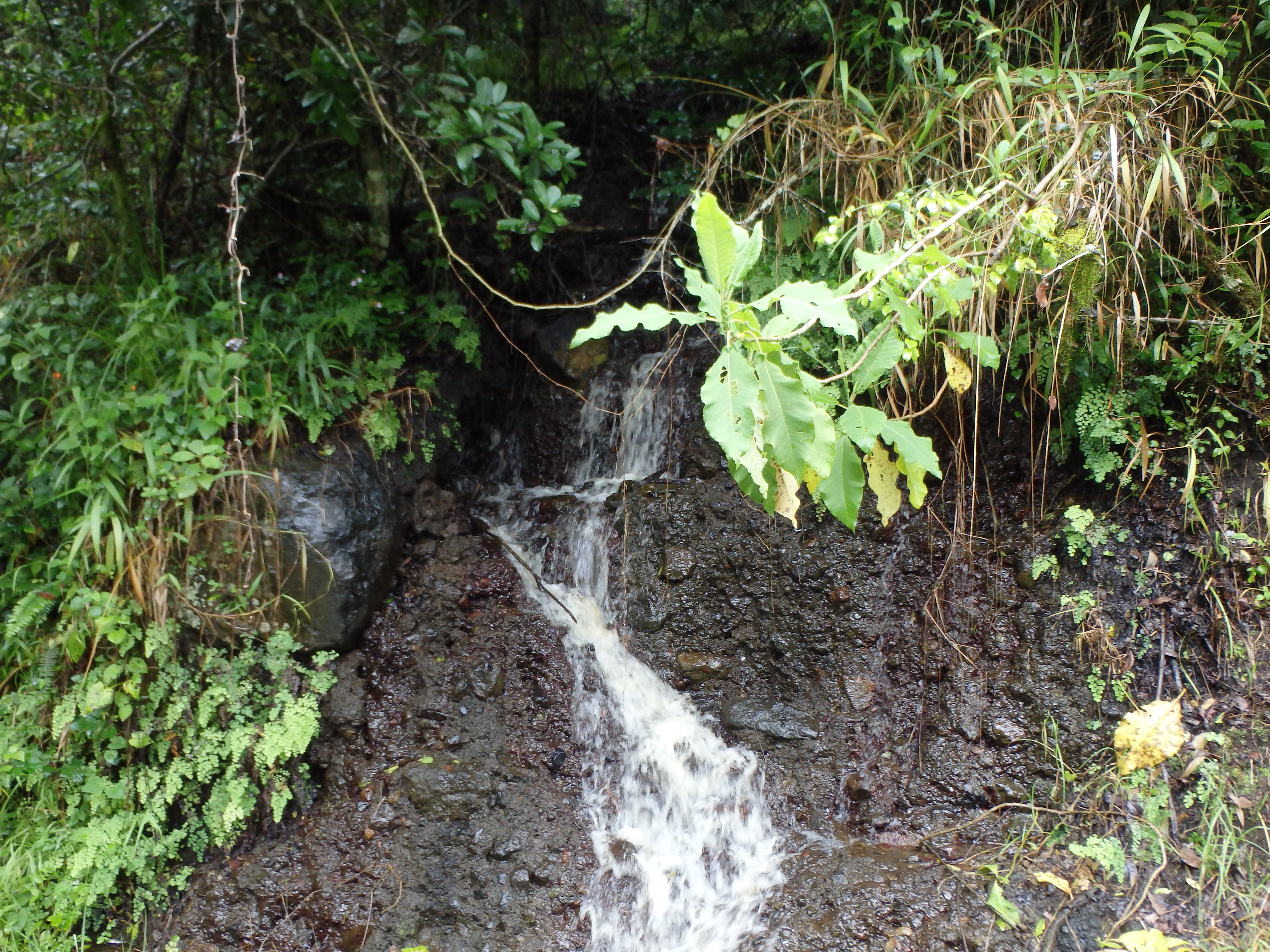 Leaving the tunnel tree, the trail slowly ascended out of the deep rainforest with more open ridgelines and grassland. As we neared the cinder cone, the trail became flooded from the recent rains, huge puddles and streams covering most of the trail. We tried to hop from rock to rock in an effort to keep our boots dry for the next two days of hiking. Adnaan learned the hard way that piles of Buffalo shit can look an awful lot like rocks.