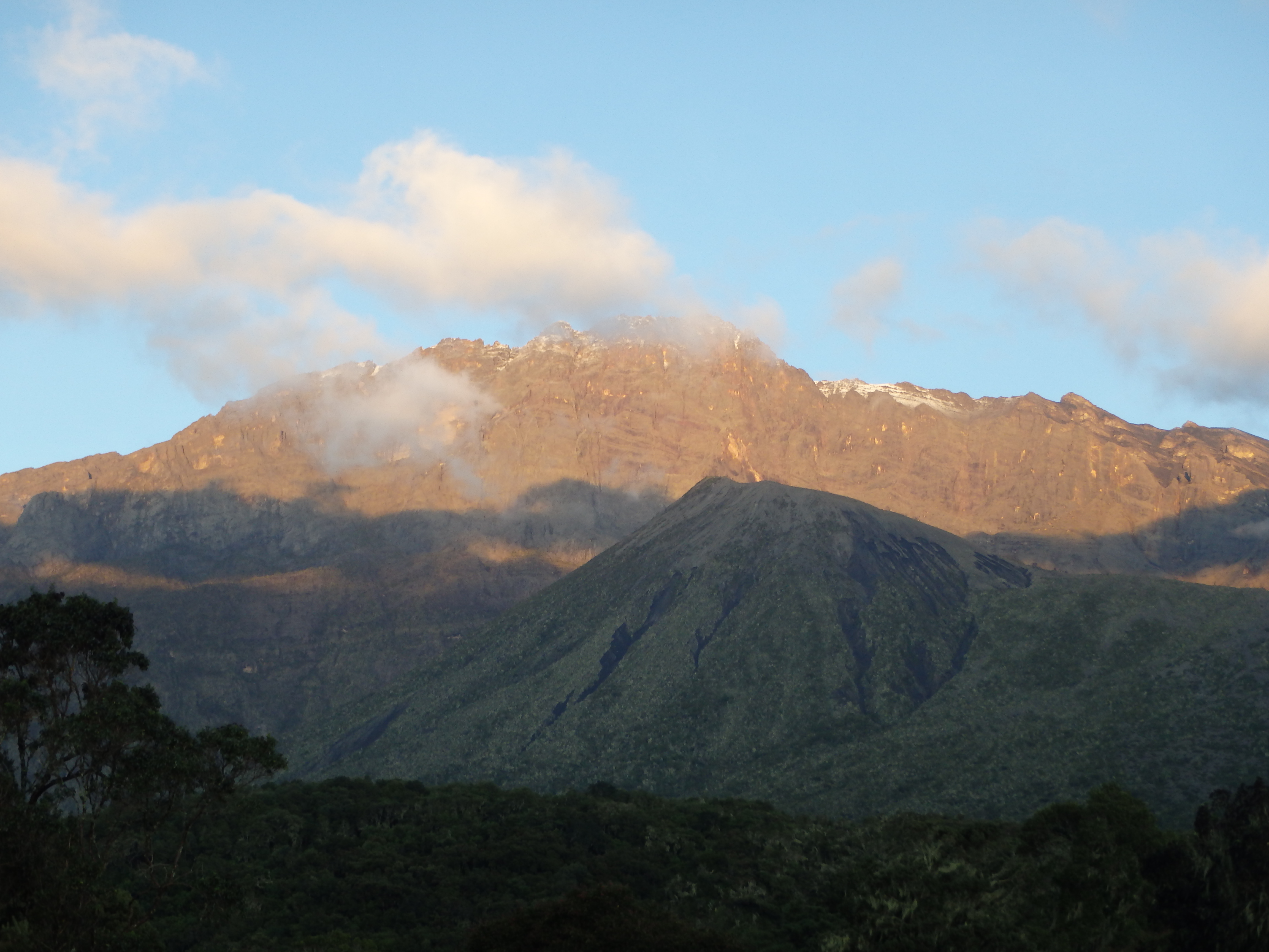 The rain was on and off for the several hours of hiking through the rainforest until we reached Miriakamba Camp at 2514 meters. Despite the distance from the trailhead, the camp was one of the most deluxe backcountry compounds I’ve ever seen with multiple bunkhouses complete with mattresses and pillows, bathrooms with running water, kitchens with a dining area, and even an observation deck.