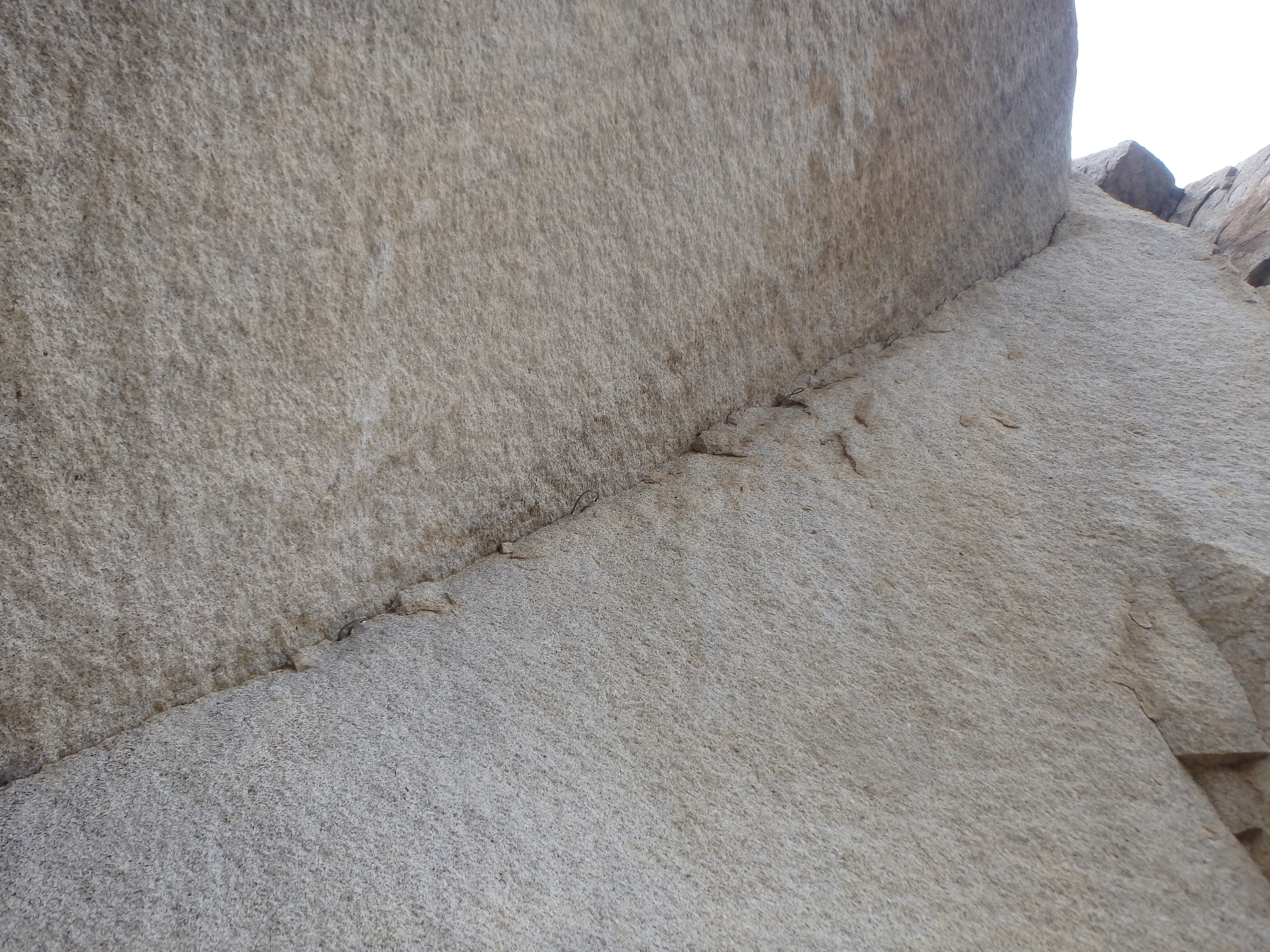 My main goal now was to reach the summit of Frankish before the rain started, and I dropped back to the road off Stoddard. The road continued south at a very easy grade as I slowly dropped to the saddle, passing a number of interesting cliffs en route. Just as I was thinking about how the cliffs held some real rock climbing potential, I spotted some bolts and hangers on the rock above. Soon, I was upon a fully developed crag with at least two dozen sport lines, a few fixed ropes and what looked like an aid route around a roof. I’ve been unable to find any information online about the crag, but would be curious to know more about the area if any reader knows.