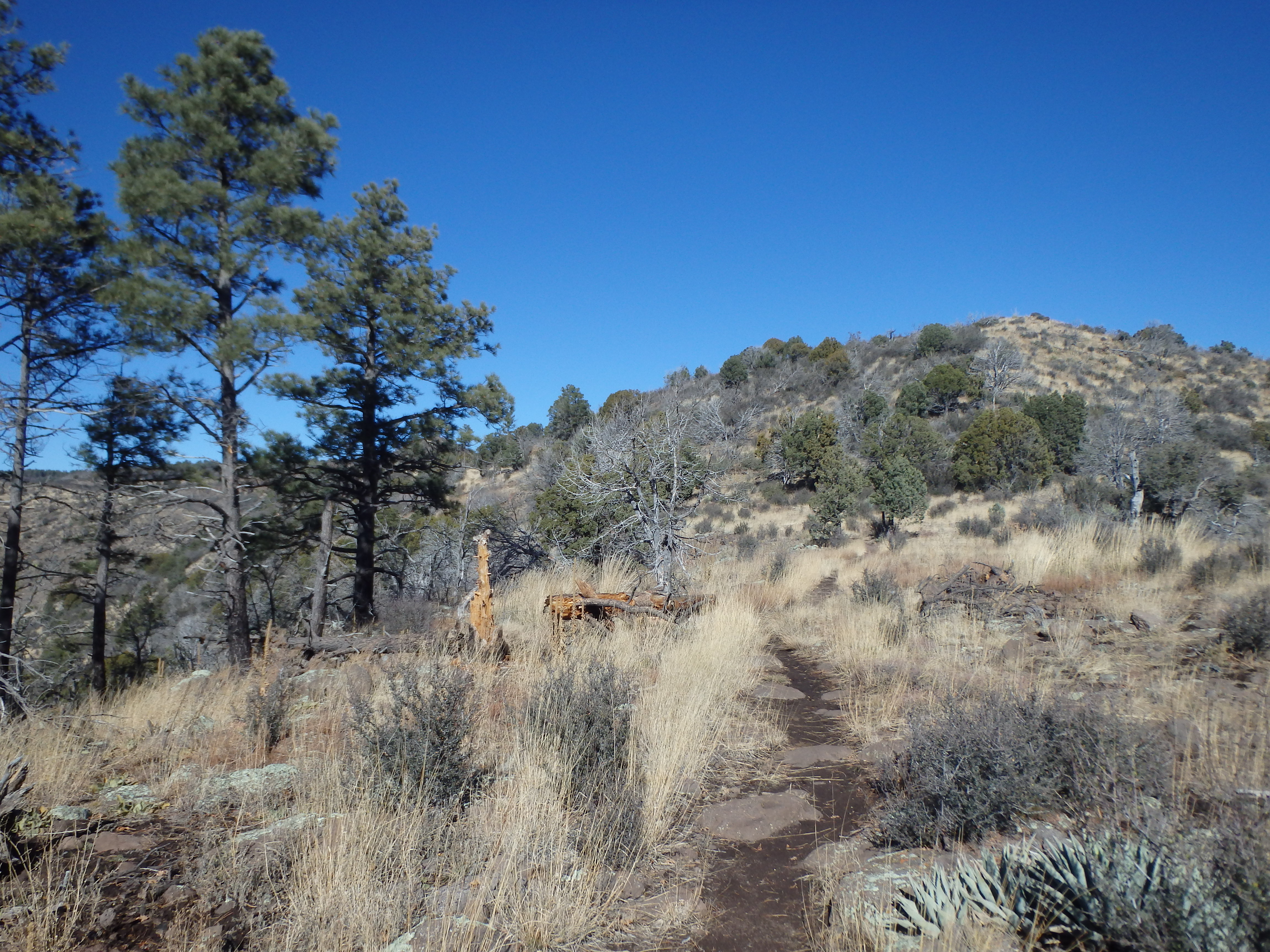 Passing through a closed gate, I followed the trail through a dense Ponderosa Pine forest, which I assumed I would be in for the majority of the hike. But the trail soon crested a ridgeline, and the views opened up across Verde Valley to Sedona and the San Francisco Peaks covered in snow. The trail slowly snaked along the ridge with the broad summit plateau lying ahead.